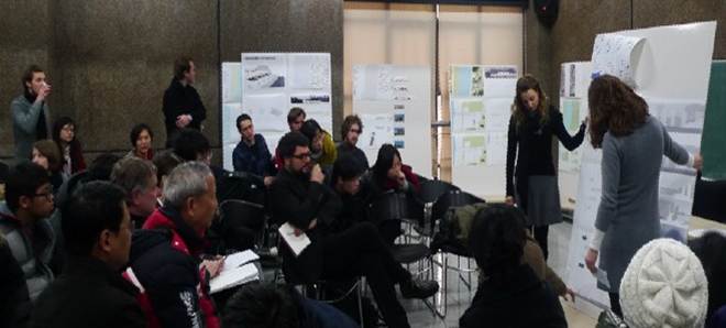 交流阶段:德国教授和学生带着他们的作业来长沙互动交流,首先是自由观展,然后中方学生介绍自己的方案,德国教授问中方学生答,德国教授们再给予一个评价。在另一场互动中,由德国学生展示他们的作业,先是教授们展示出他们在研究基础上对这一作业的理解讲义,然后德方学生分别介绍他们的方案,反过来中方老师问德方学生答。