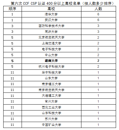 The sixth CCF CSP certification test schools with most people graded 400+ (ranked by the number of people)