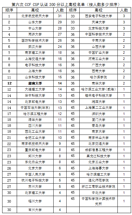 CCF CSP CERTIFICATION STATISTICS 300+ & RANKINGS/ CCF CSP认证300分以上成绩统计与排名