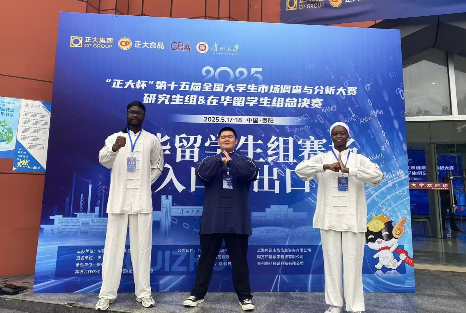 近日,“正大杯”第十五届全国大学生市场调查与分析大赛在华留学生组总决赛在贵州大学举行。由九游会j9官网登陆入口工商管理学院2022级本科生彭华瑜,留学生BANTSIMBA LOCKO DARIUS、AISSATA OUSMANE DJIRE组成的代表队获在华留学生组一等奖。王荔妍老师获优秀指导教师。学院获奖团队以“‘打得一拳开,免得百拳来’——在华留学生对中国功夫文化认知现状及潜在传播者挖掘调查”为主题,深入分析留学生群体对中国功夫文化的认知特点,探索传...