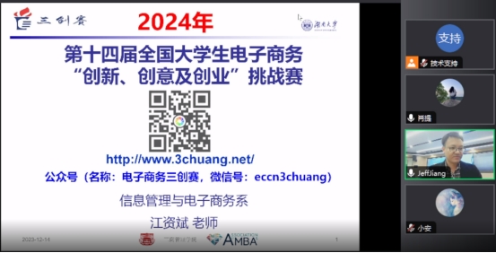 2024年湖南省大学生电子商务大赛暨第十四届全国大学生电子商务“创新、创意及创业”大赛已拉开帷幕,12月14日,工商管理学院本科教育管理中心邀请信息管理与电子商务系江资斌老师在线上为学子做赛事宣讲,共有330余名同学参加。江资斌主要从竞赛简介、获奖案例以及参赛选题等方面进行介绍。通过对竞赛规则和参赛流程展开讲述,并结合全国特等奖作品,从如何确定比赛选题到商业策划书的撰写,细致地讲述了如何做好项目实践与创业...