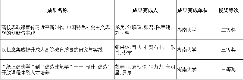 近日,湖南省教育厅公布第十二届湖南省高等教育教学成果奖获奖项目,我校39项成果获奖,其中特等奖1项、一等奖18项、二等奖17项、三等奖3项。