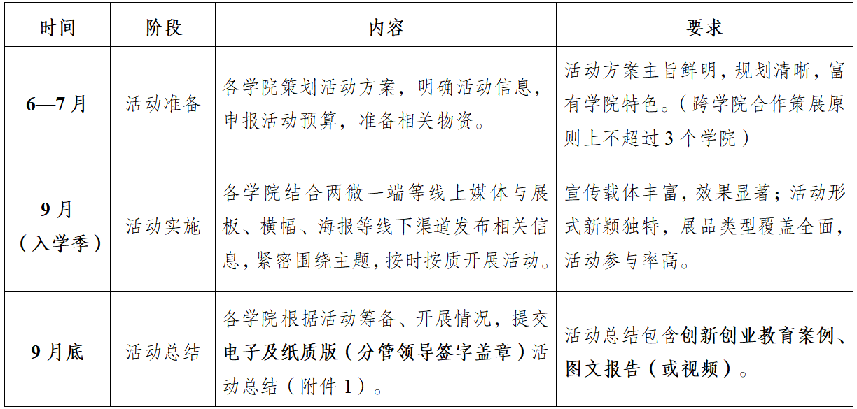 为深入贯彻落实国家创新驱动发展战略与党中央、国务院关于深化高校创新创业教育改革的重大决策部署,激发学生创新创业意识,着力培养更多更高素质拔尖创新人才。经研究,决定在2025年秋入学季举办大学生创新创业成果展。