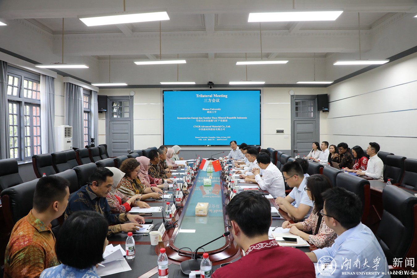 6月16日下午,九游会j9官网登陆入口与印度尼西亚能源与矿产资源部和湖南中伟控股集团有限公司代表团座谈会在校办公楼205会议室举行。印度尼西亚能源与矿产资源部矿产与煤炭总司司长Dr. Tri Winarno,湖南中伟控股集团有限公司董事长邓伟明,副校长姜潮出席会议。
