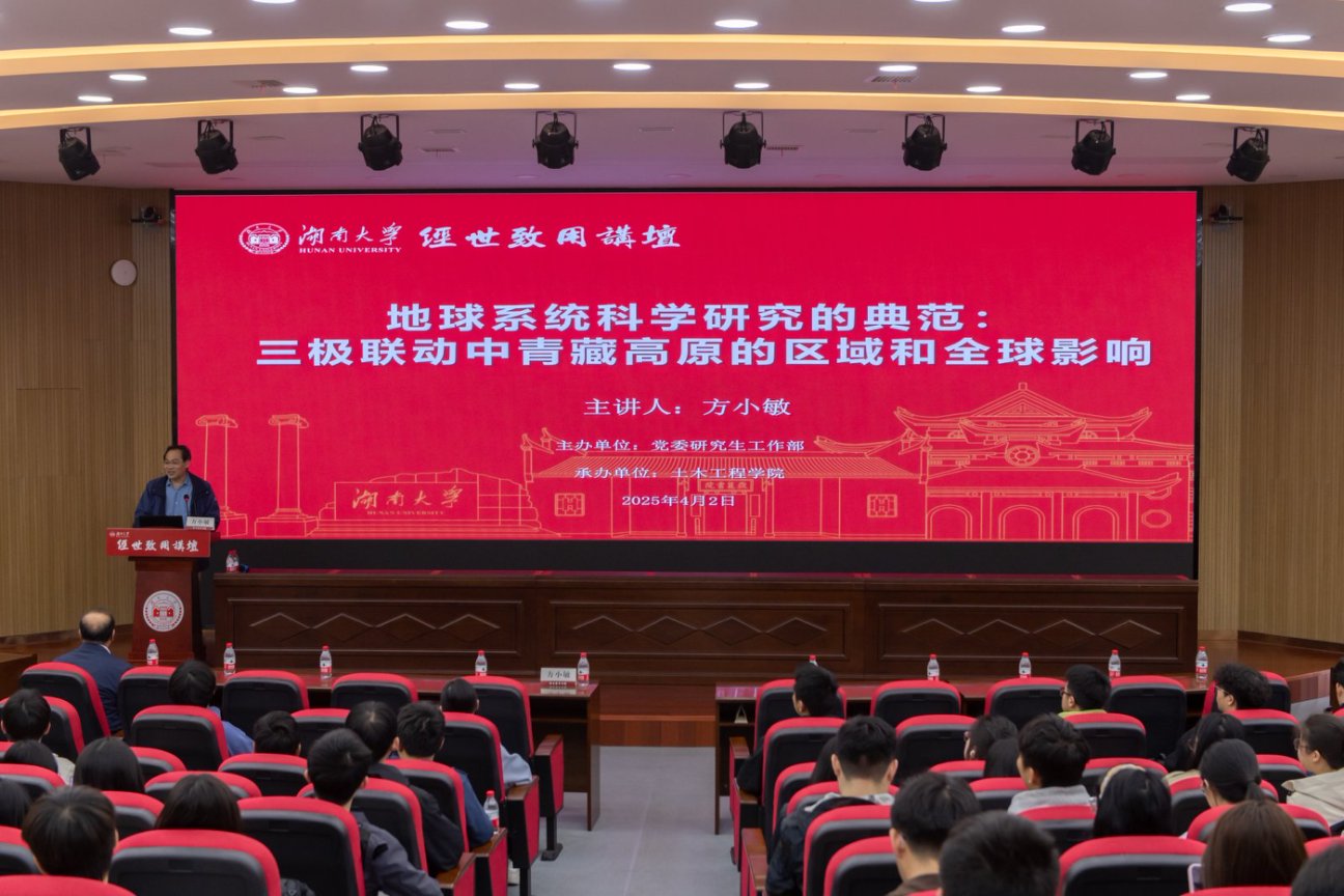4月2日下午,中国科学院院士、中国地理学会会士方小敏做客经世致用讲坛,在综合楼208报告厅作“地球系统科学研究的典范:三极联动中青藏高原的区域和全球影响”主题报告。副校长李树涛主持报告会。方小敏深入剖析了气候变化对地球环境与生物多样性的综合影响。他强调,青藏高原作为全球气候变化研究的核心区域,其冰川消融、水循环模式及地表过程的变化对预测未来环境趋势具有关键科学价值,强调提升全球环境变化预测精度的必要...